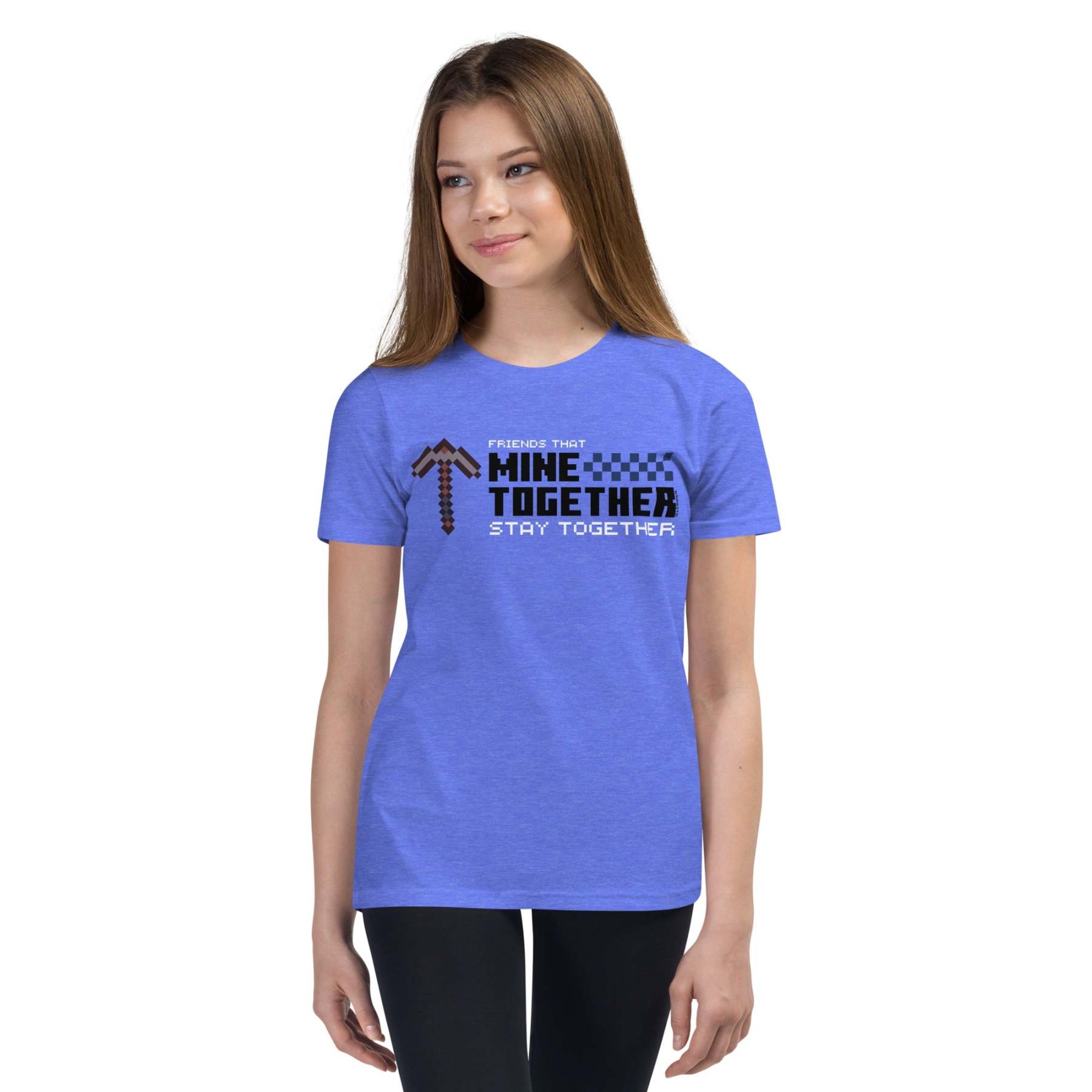 Craft everlasting memories with our Minecraft 'Friends That Mine Together Stay Together' Youth T-shirt. This T-shirt celebrates the shared adventures, laughter, and triumphs of the pixelated universe. Unite with your fellow gamers, proudly don this t-shirt, and let the world know that the best adventures are the ones crafted together in the enchanting landscapes of Minecraft.