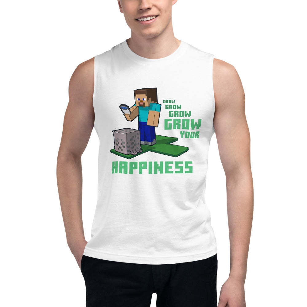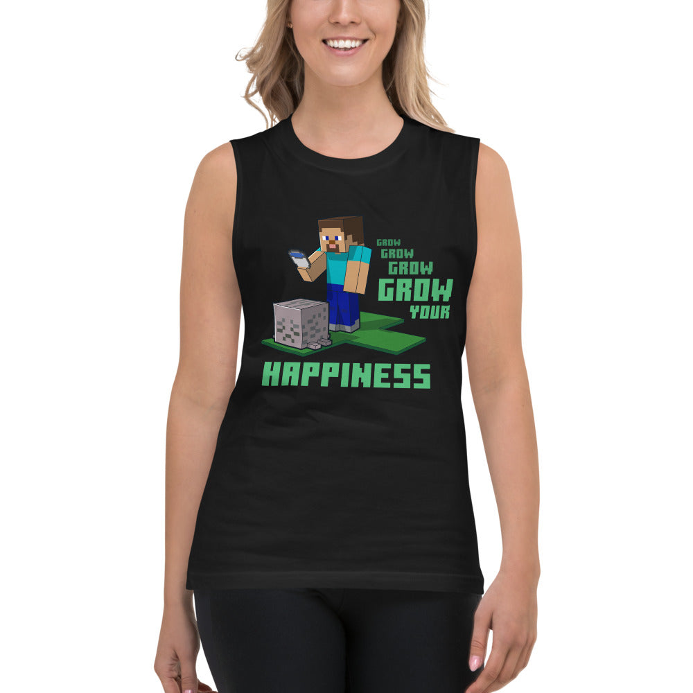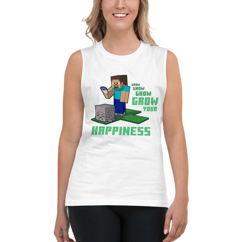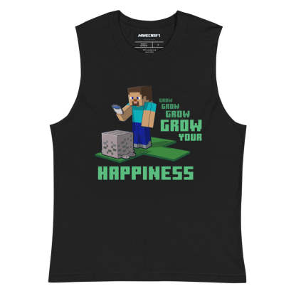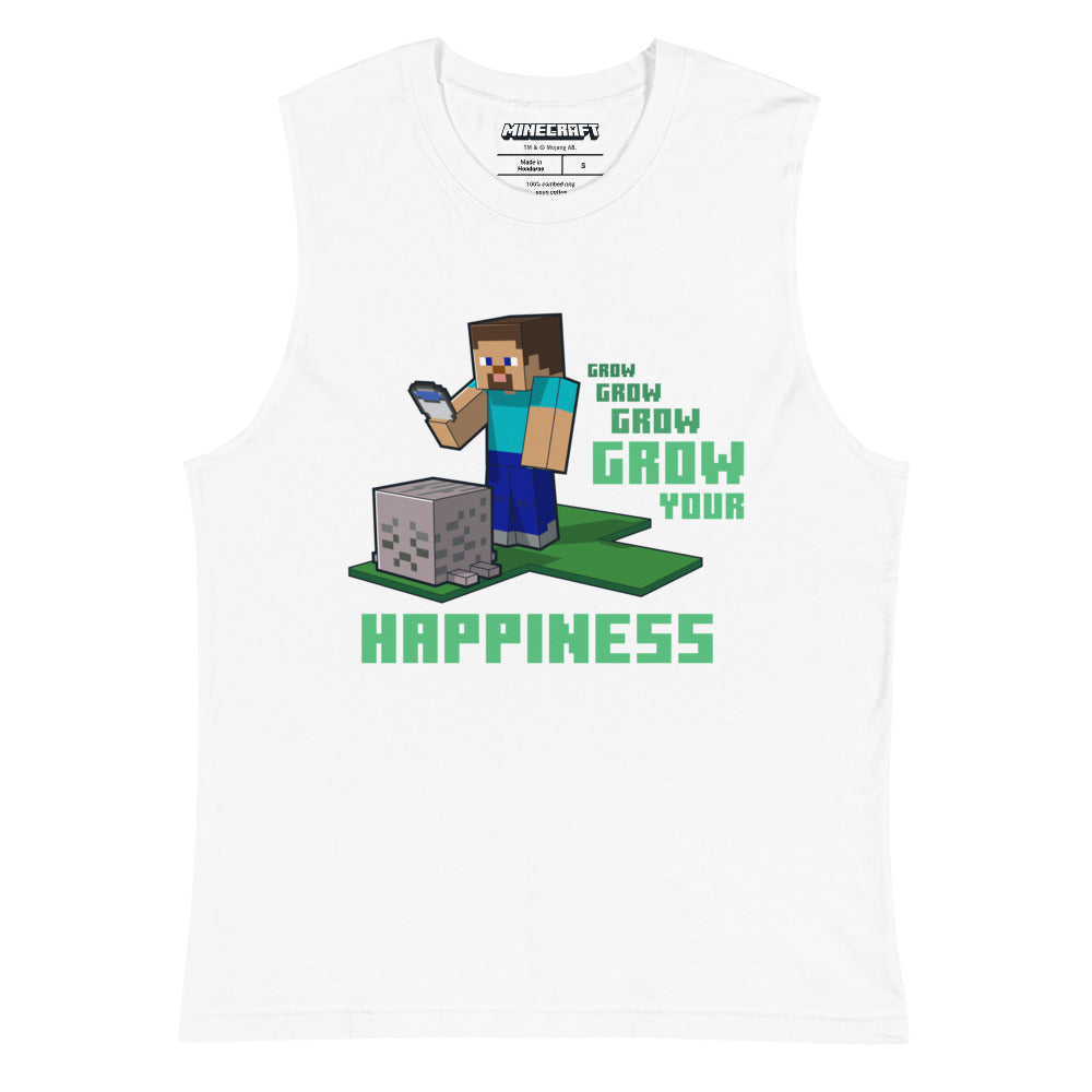 Level up your positive vibes with the Minecraft Grow Your Happiness Adult Tank Top. Featuring a cheerful design inspired by the pixel-perfect world of Minecraft, this tank is perfect for gamers who love combining comfort with creativity.